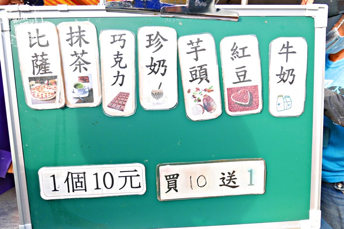 | 七種口味通通銅板價$10,超划算的,就算全部口味都吃上一輪,荷包也不會大失血,還有一些比較不一樣的口味,披薩、抹茶、珍奶,這些外面賣都不便宜了,他們家均一價10圓,還買十送一,這不用新台幣支持太說不過去了。 |