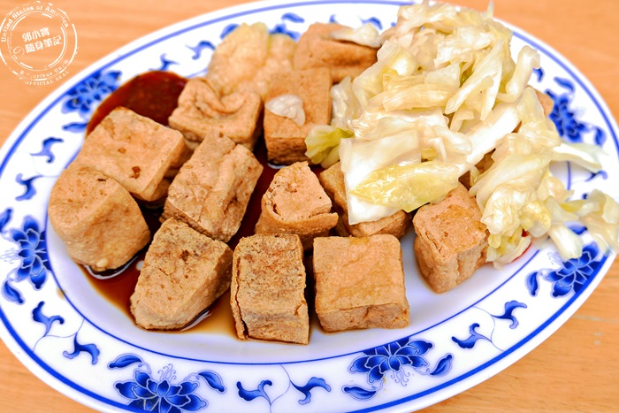 | 很傳統的臭豆腐,一上桌就聞到香氣了,這臭的發香的好味道可以說是台灣最獨特的美食,只是外國人不怎麼愛,艾編超喜歡的,他們家的做法是將臭豆腐切塊後下去油炸,每一面都炸的金黃酥脆的,香氣十足呀!加辣豆瓣醬味道更棒。 |