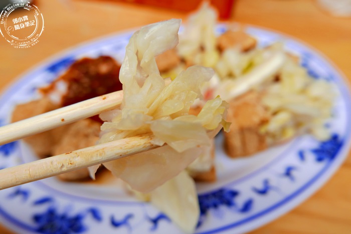 | 泡菜的部分如果單吃蠻扣分的,雖然是台式泡菜,酸度是有的,但是少了甜味,都只有高麗菜而已,看起來沒有太豐富太美味的樣子,酸度的部分是來自於醋的味道,加上高麗菜的清脆,這樣的口感跟味道單吃真的沒有很好吃,不過跟臭豆腐一起吃,味道相當和諧,有加分的效果,口感也清爽許多唷!好像這個泡菜是為了他們家臭豆腐量身訂做的,搭配起來剛剛好。 |