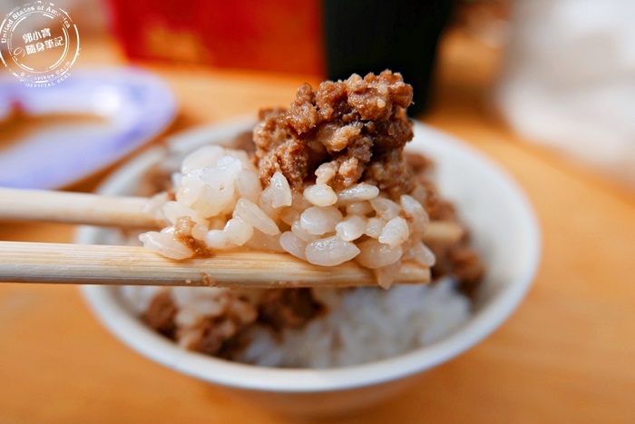 這肉燥飯真的有夠便宜的,10元銅板價,一送上桌的時候,能感覺到這一碗肉燥飯很不一樣,非常的家常,就像以前媽媽滷的肉燥,味道聞起來就像是在家裡的廚房會傳來的香味一樣,老闆選用豬的後腿肉純手工的滷出一大鍋溫暖人心的肉燥,他們家的肉燥有瘦肉也有肥肉,瘦肉的部分非常的軟嫩,肥肉部分軟Q一入口就化掉,味道很香,米飯很Q很柔軟,吸收滷汁香氣滋味超讚的,完全不死鹹,很實在的一碗肉燥飯而且一碗才10塊錢,揪甘心ㄟ!