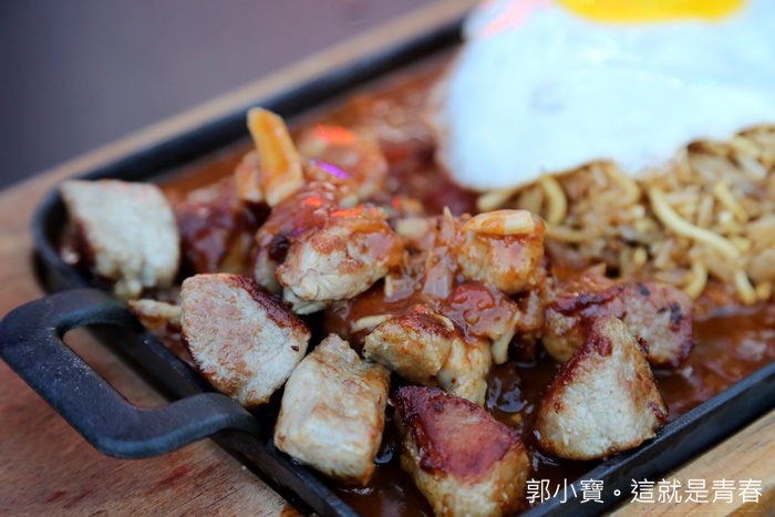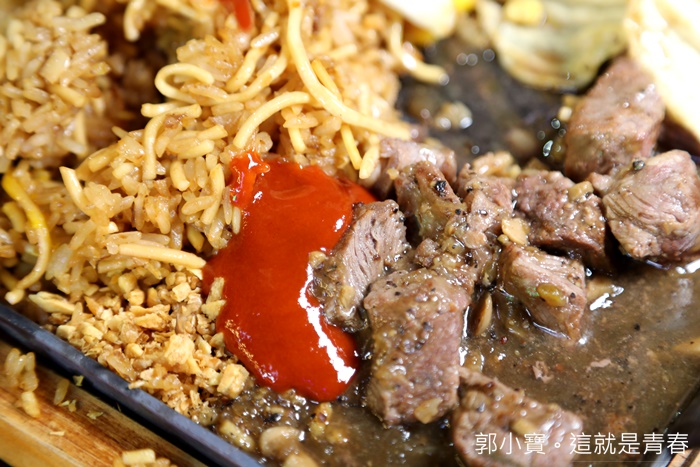 | 偷偷跑去了鐵板旁邊拍了一張,把麵跟飯混合再一起炒真的還滿特別的,我還滿期待吃起來的口感會怎樣,麵條看起來像是一般的鐵板麵條,不管是鐵板麵條還是炒飯都是我喜歡的主食。 |
