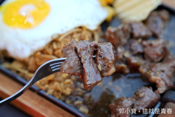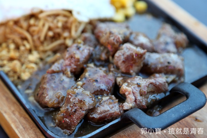 | 我點的是黑胡椒牛肉,黑胡椒牛肉吃起來的口感真的很好,不是使用軟趴趴的組合肉,很多夜市牛排都是使用低廉的組合肉,胖大爺竟然是使用原肉真的很實在,每一口咬下去都可以咀嚼到牛肉的口感跟纖維,真的非常推薦,黑胡椒香氣淡淡的不會嗆辣,真的很推薦! |