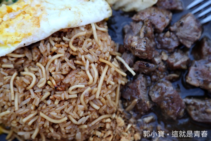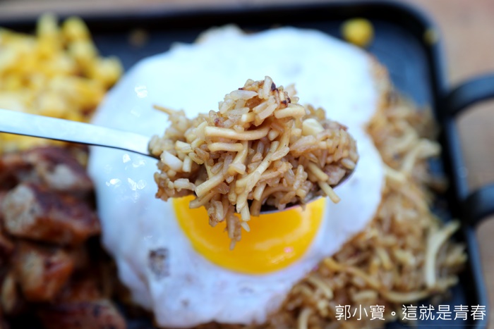 | 舀起一口入馬塞進嘴裡,炒飯的滋味非常入味以外,米飯不會過濕也不會太乾,醬香非常透以外,咀嚼著炒飯麵的口感真得頗為特別,雖然大部分都是炒飯的口感,但是麵條一起入口真的提升的口感的層次感。 |