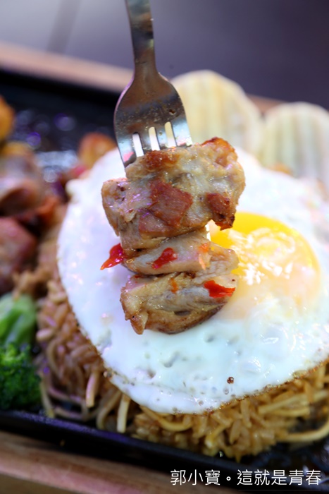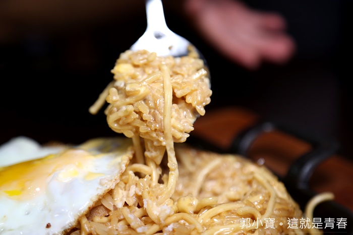| 翻開荷包蛋終於看到這被一堆人大推的炒飯麵主角了,店家給的份量非常的足,目測大概約兩碗飯量的感覺,炒飯裡面夾雜著炒麵真的還滿吸睛的,一口肉一口炒飯麵說真的非常滿足。 |