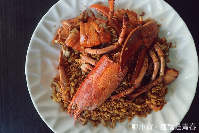 | 這次要推薦的還有這一道避風塘龍蝦二吃,如果妳不想二吃的話也可以單純點避風塘龍蝦,龍蝦挑的非常大隻,新鮮度也夠沒有腥味,重點是師傅做的蒜酥真的是一流手藝,避風塘最重要的就是他的蒜酥啊!!!! |