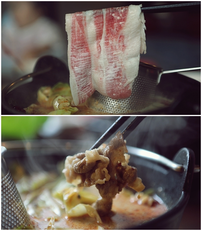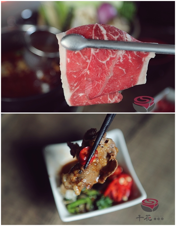 | 因為石頭火鍋本身就有炒過豬五花所以湯頭本身就比較油,所以我很推薦搭配翼板牛肉,翼板牛肉的鮮甜跟口感較紮實,搭配石頭火鍋涮起來非常對味。 |