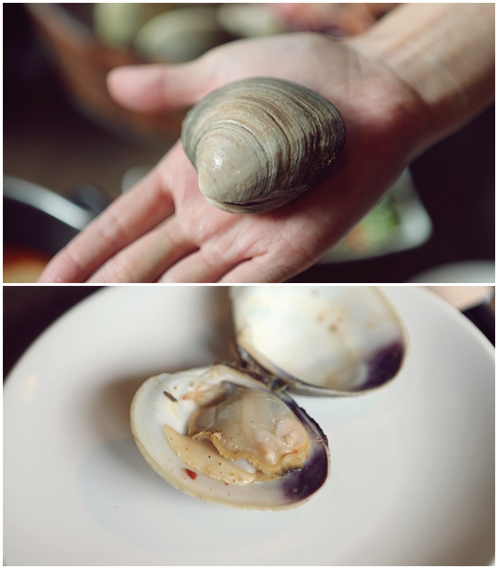 | 超級大顆的牛奶貝,放在手掌心都快跟手掌心一樣大了,大口吃下牛奶貝非常過癮,蛋是牛奶貝吃起來似乎比較鹹了一點,不過無損它的新鮮跟美味。 |