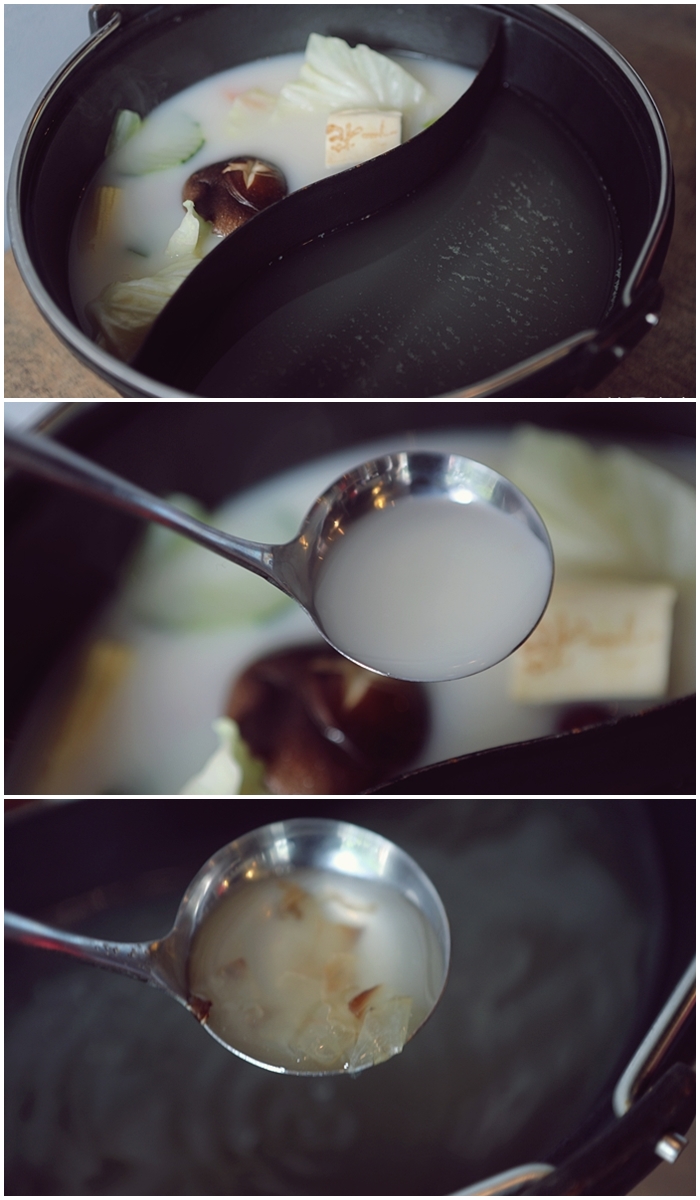 藥膳白湯也是千花頗有人氣的湯頭,很多人都喜歡她們家用大骨熬煮出來的湯頭,白湯溫潤非常好喝以外,昆布還有加點柴魚也很不錯,千花另外還有純素的鍋物,如果想多種口味都吃一點的話,你也可以選擇大鍋的鴛鴦鍋。 |