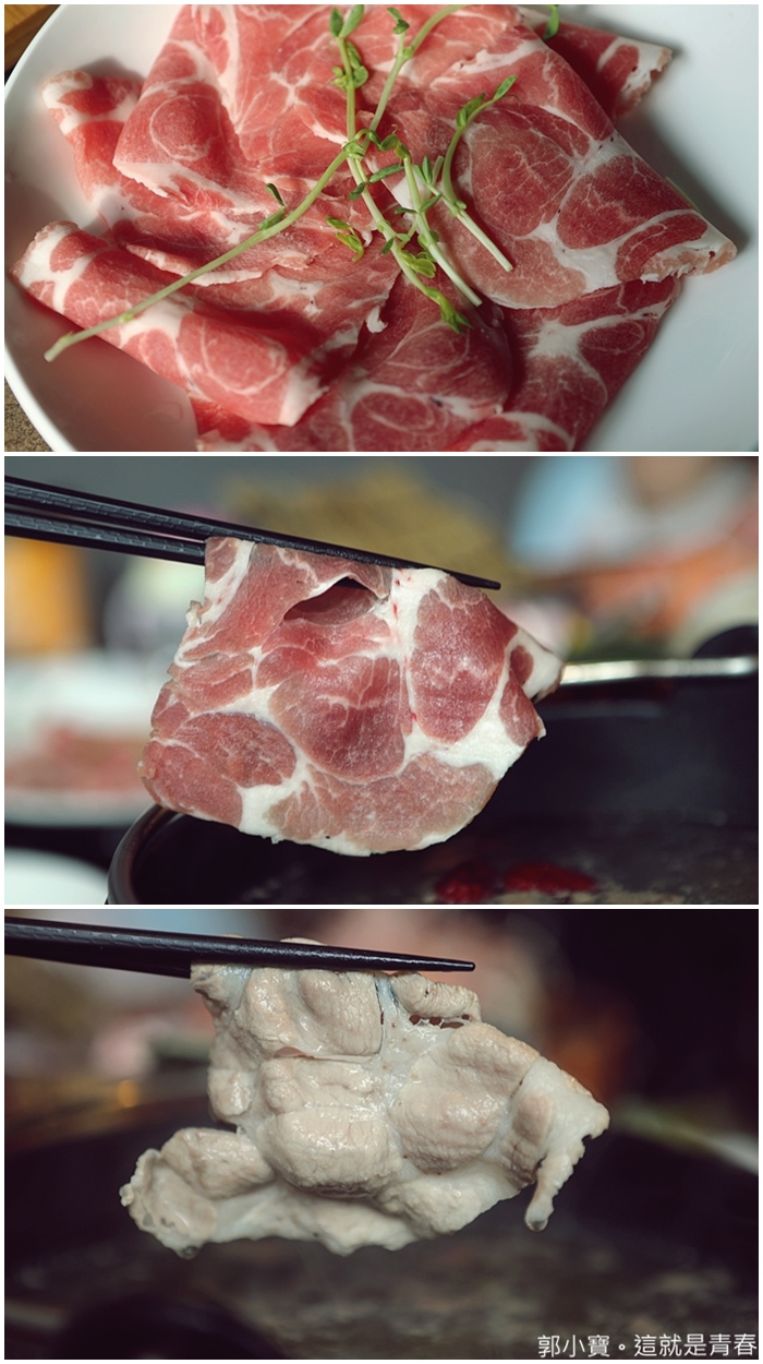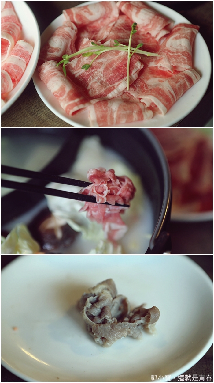 | 梅花豬涮養身藥膳還不錯耶,梅花豬肉的厚度切得滿厚的,所以吃起來的口感非常涮嘴,搭配養身藥膳白湯真的很好吃,瘦肉跟肥肉的比例也很均勻。 |