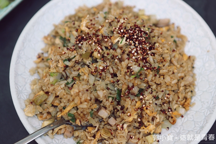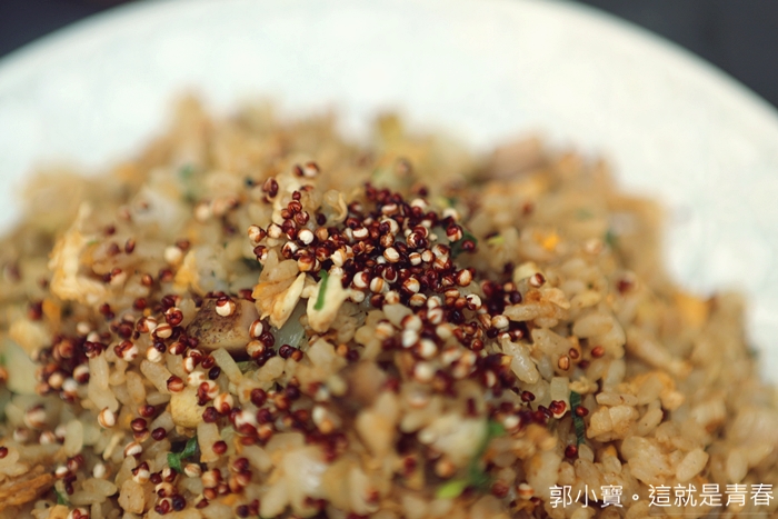 | 第一口入口確實讓我感受到不一樣的炒飯滋味,芭樂乾、臺灣紅藜、香料豬彼此都不搶味,芭樂乾的香氣、紅藜麥的芬芳加上鹹香的香料豬一整個滋味非常豐富,而且這三個食材並不會互相搶味,一層一層的透出來真的搭配得天衣無縫,每一口都很滿足。 |
