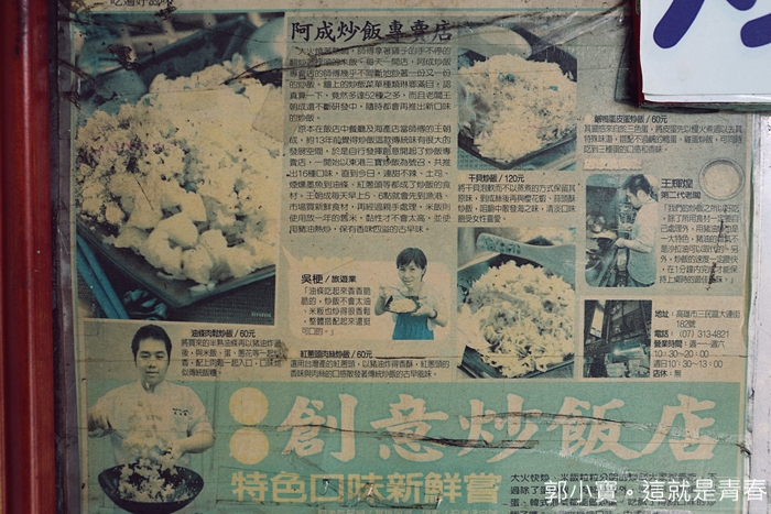 | 阿成炒飯專賣店在高雄算是小有名氣,以前在公司的時候很多同事午餐的時候都會買阿成炒飯回來吃,因為口味非常的多,但是大連總店我還是第一次造訪,因為以前上班在三多路,所以幾乎都是到自強店居多,這次終於有機會來大連總店瞧一瞧,阿成炒飯其實最早不是賣炒飯,第一代阿成最早是在三民市場內賣鱔魚,後來因為某些因素才移到這邊,由第二代接手創立阿成炒飯,瞬間就擦亮了阿成炒飯的招牌,成為高雄人氣炒飯店。 |