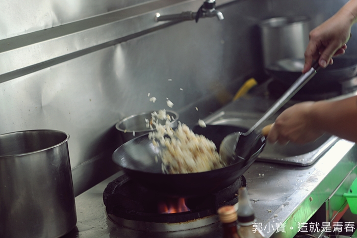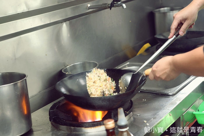 | 阿成炒飯的速度非常的快,大火快炒小火打蛋節奏控制得很好,幾乎一盤炒飯在他手底下兩三分鐘就完成了。 |