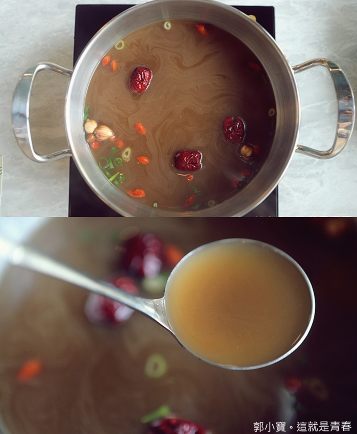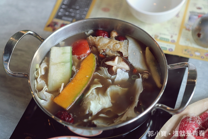 | 另外一鍋我們的蒙古養生鍋的湯頭加上菜盤熬煮後的風味更棒了,湯頭我真的很喜歡,孜然的風味加上蔬菜的鮮甜,加上還有大量的蔬菜更是太妃的愛,太妃是蔬菜狂阿XDD |