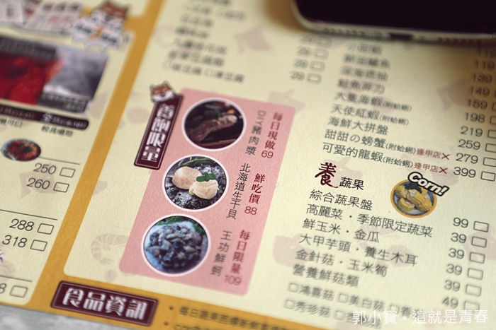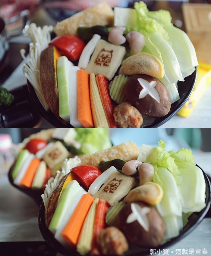 | 養鍋提供的菜盤也很豐富,而且配色上很吸睛,五行蔬菜幾乎都有配置,而且分量也非常足夠,很有誠意的菜盤,難怪會被那麼多台中人喻為來逢甲一定要吃的個人鍋物餐廳!! |
