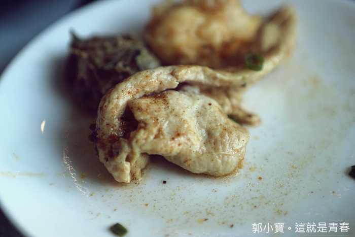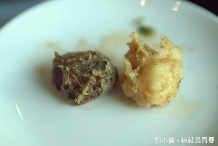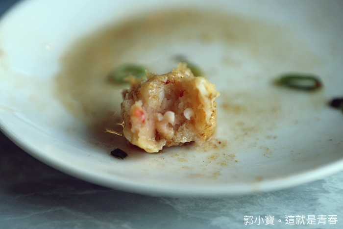 | 豬肉漿讓我頗為驚豔,新鮮的豬肉漿一口咬下非常彈牙紮實,非常Q口感非常好以外,一口咬下才知道裡面綠色的蔬菜是九層塔,跟豬肉一整個非常合拍,一口接著一口真的太滿足了,怎麼會有好吃的豬肉漿滑啊!! |