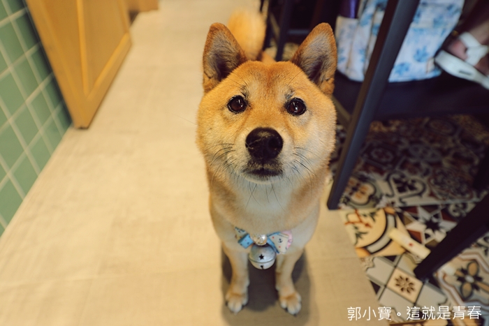 | 幸運的遇到店長保庇(諧音),真的是很可愛的柴犬,眼睛水汪汪的超可愛,據說老闆開店的時候他就在老闆身邊了,且養鍋的LOGO就是用牠做成的。 |