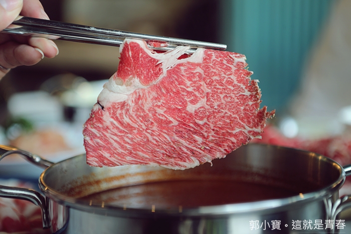 | 小牛兒涮了一下起鍋入口的滋味很好吃,不管是搭配麻辣還是蒙古鍋都很適合,肥瘦的比例很剛好,入口可以品嘗到甜美的油脂還有鮮甜的瘦肉,我還滿愛他們家的雪花牛,口感真的很涮嘴XD |