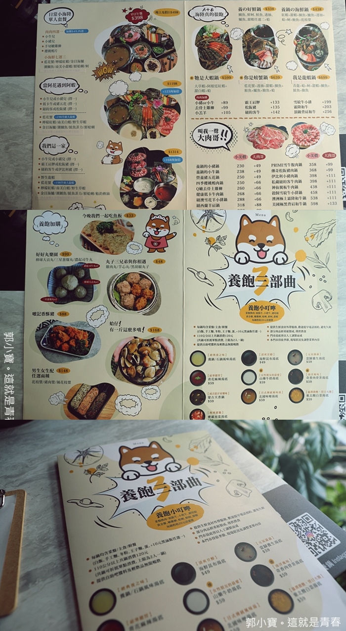 | 第一眼看到養鍋的菜單有點不知道怎麼下手,仔細研究一下發現餐點的組合搭配很多,組合起來也很多樣化,而且養鍋提供的湯頭就高達12種湯頭。 |