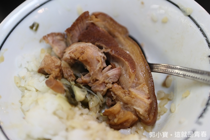 | 一口吃下真的很不賴,它們家的魯肉飯有中我的口味,雖然肥肉不到黏嘴的地步,但是整體肥而不膩的味道很好,搭配白飯非常美味,美中不足的依然是我個人認為醬汁不夠鹹,但是小碗一碗25員還滿便宜的。 |