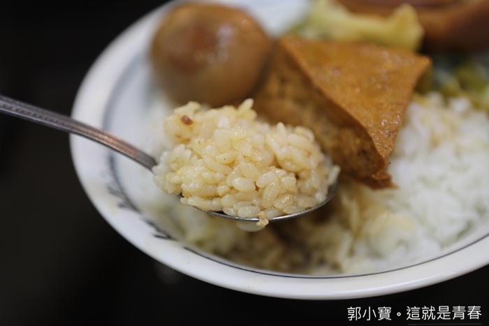| 老爹肉羹的飯其實煮的還不錯,軟硬適中,是好吃的白米飯,醬汁香氣也不錯,對我來說鹹度稍微淡了,可能我是南部人吃的比較重鹹,少了滷汁的鹹度跟重口味,但是太妃說這味道他還滿喜歡的,從剛剛的醬色到味道,老爹的醬油應該下手還滿輕的。 |