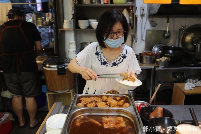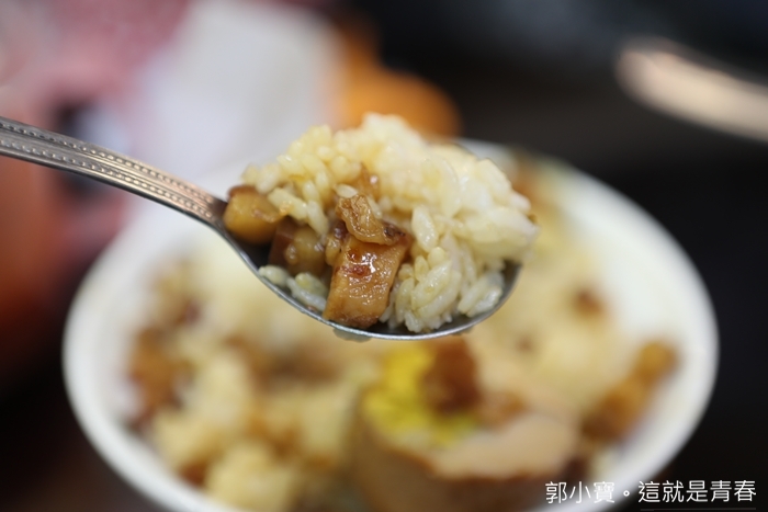| 其實端上來的時候我有遲疑了一下,因為這跟照片上的不太一樣,這個腿庫飯感覺應該是彰化控肉飯的作法,不過看起來確實非常誘人,我好久沒有吃過彰化控肉飯了,我每次都覺得彰化的控肉飯真的超迷人的!! |