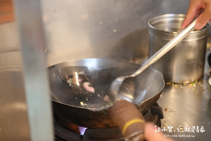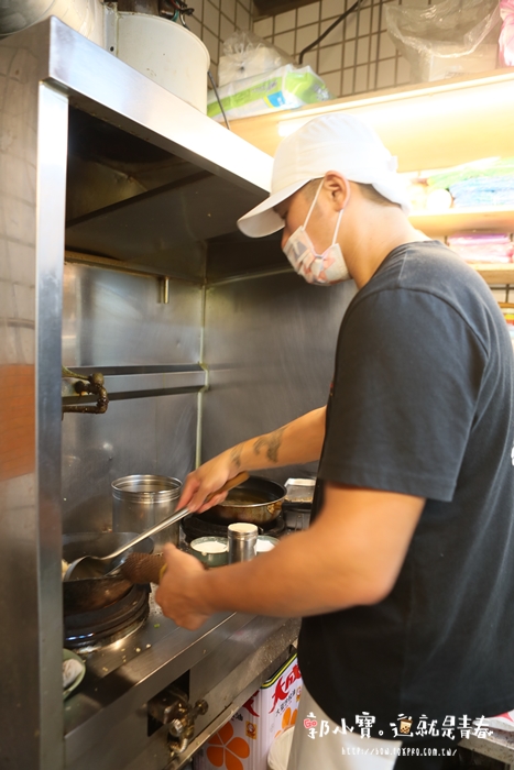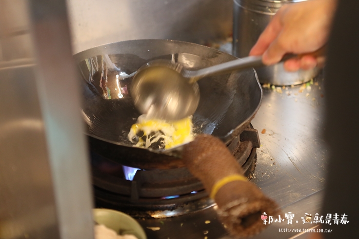 | 先下鍋炒蛋,老闆熟練的舀油熱鍋,打蛋,拌炒真的好流暢喔! |