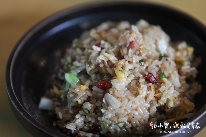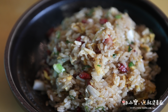 | 叉燒蛋炒飯入口讓我頗為驚艷,豐富的香氣不只是只有蛋香跟叉燒味,仔細的看了一下配料,還有洋蔥丁、蒜頭丁、蔥花、高麗菜等,入口的滋味層次一層又一層非常豐富,且炒飯的鍋香氣也很足。 |