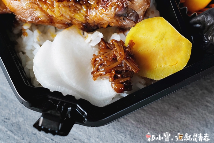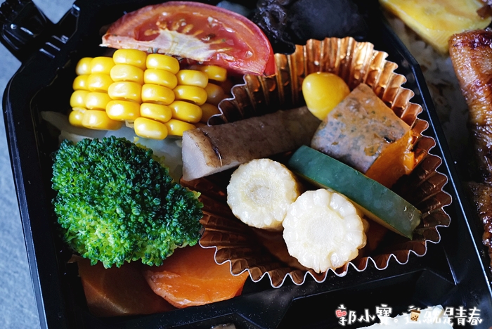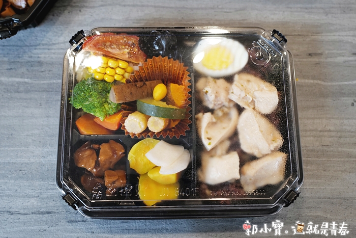 | 光是其中一格的配菜就超豐富的,還有少見的牛蒡也處理的超好吃,大豆玉米南瓜都是好的澱粉,青花菜也很多汁,少量澱粉搭配雞胸肉高蛋白,真的超級均衡。 |