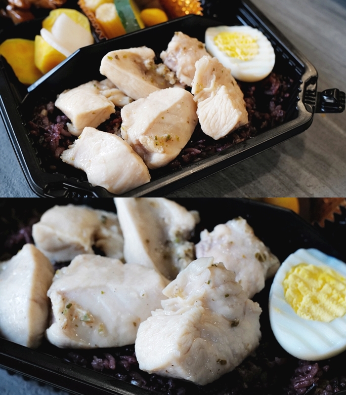 | 大匠作的水煮雞胸肉真的超厲害,坊間大多也都是舒肥過的雞胸肉,吃起來較軟嫩不乾柴,但是大匠作的除了軟嫩以外又超多汁,帶點迷迭香的味道真的超美味的。 |