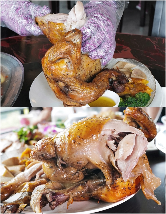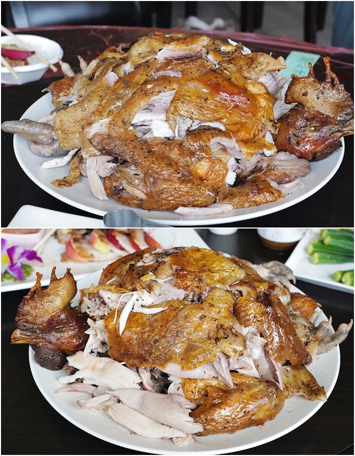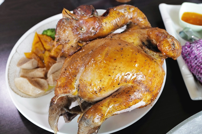 拉拉人嘉的烤雞還滿大隻的,比起坊間的烤雞相比,確實大了很多,烤雞的顏色也非常好看,重點是香氣非常濃郁,一端上來是飄香四溢。 |