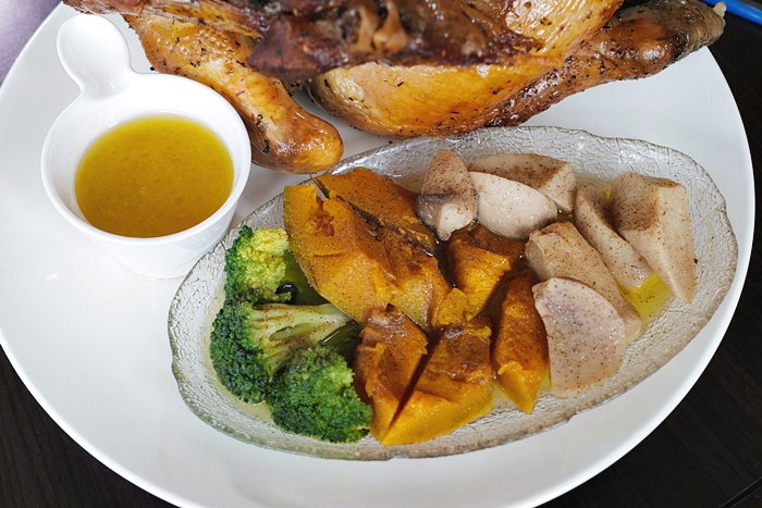 | 一旁還附上花椰菜、南瓜跟芋頭,烤南瓜我超喜歡,好吃! |