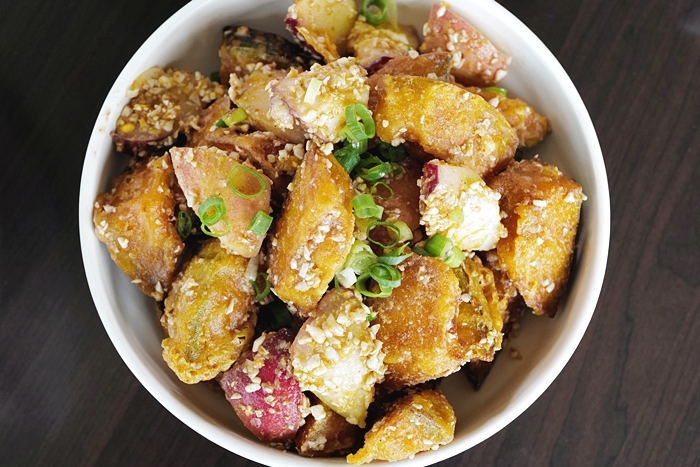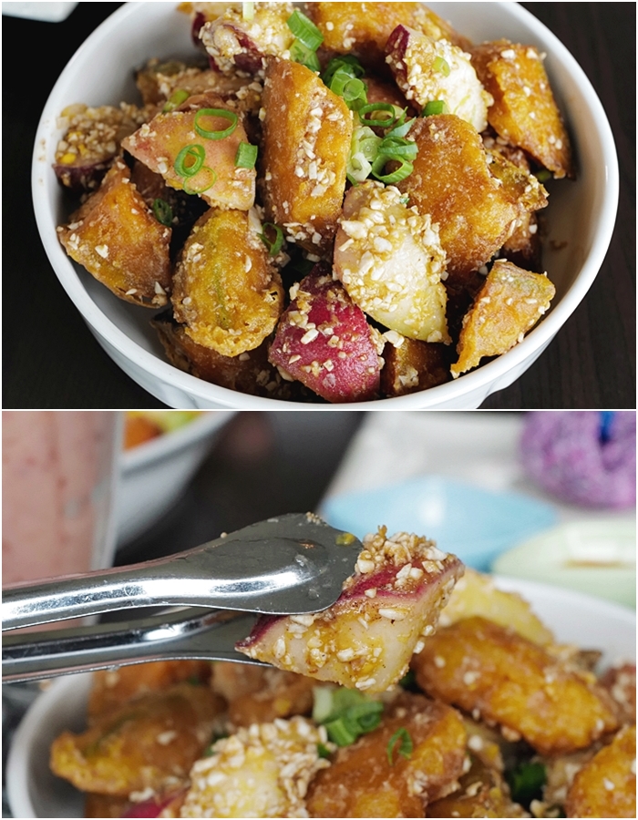 | 超讓人驚訝的金沙水蜜桃南瓜,將水蜜桃跟南瓜裹上鹹蛋黃後下油鍋去炸,真的沒想到味道會這麼搭,一整個就是超喜歡的,水蜜桃跟金沙怎麼會那麼搭,鹹甜又爆汁,真的超推薦! |