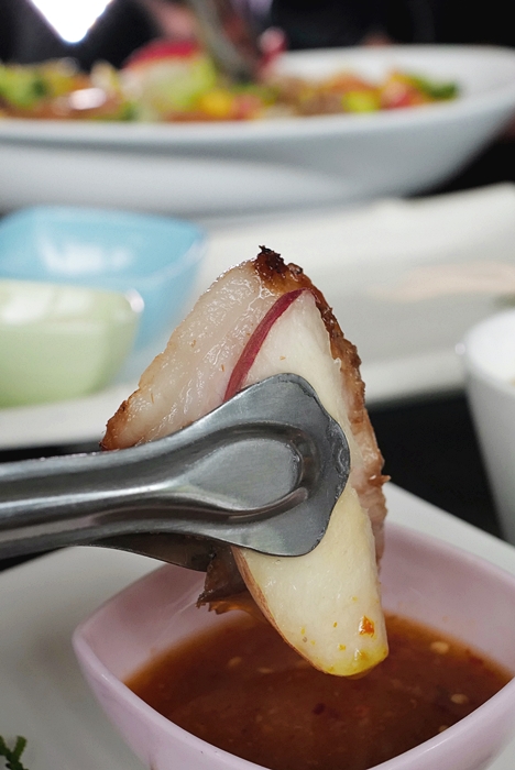 | 沾著泰式辣椒醬一起吃,味道更是特別,鹹鹹甜甜辣辣的滋味真的很讓人驚訝! |