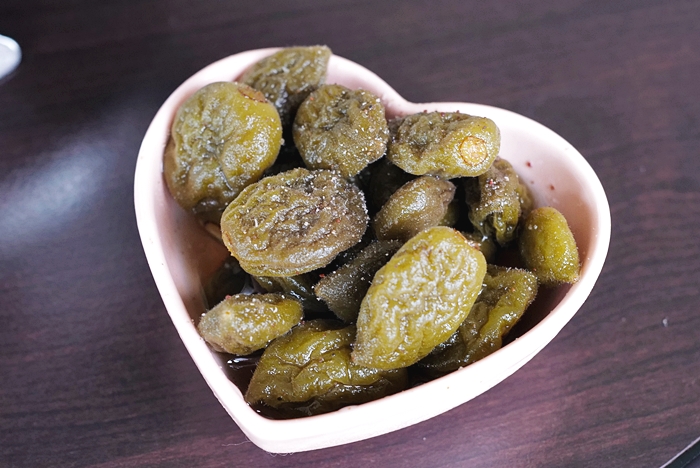 據說這是水蜜桃還很小顆掉果下來,餐廳就把她拿來醃漬成蜜餞的感覺,吃起來清脆甜口,非常討喜, |