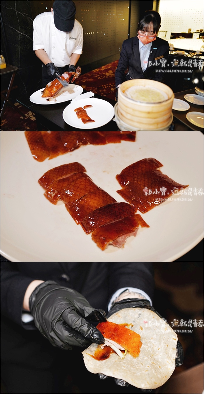 | 不管她講的是不是真的,我個人是信了啦,我在頤宮跟其他餐廳大多確實都是使用嫩鴨,主打鴨肉非常嫩,鴨皮薄脆,這樣來我倒是更好奇Le Mei樂美的烤鴨了,片鴨是位上,只要坐在位子上,自然有人幫你服務上桌。 |