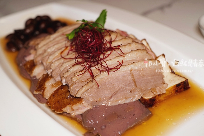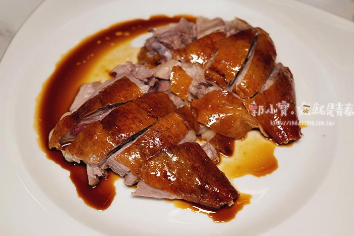 | 跟坊間烤鴨吃嫩鴨的原味不同,主廚特別有先調配自己的配方醃漬過,入口的鴨肉也非常嫩,成鴨的肉可以這麼嫩頗讓我意外,湯汁跟鴨油滿溢,確實有獨到的功夫,好吃!!! |