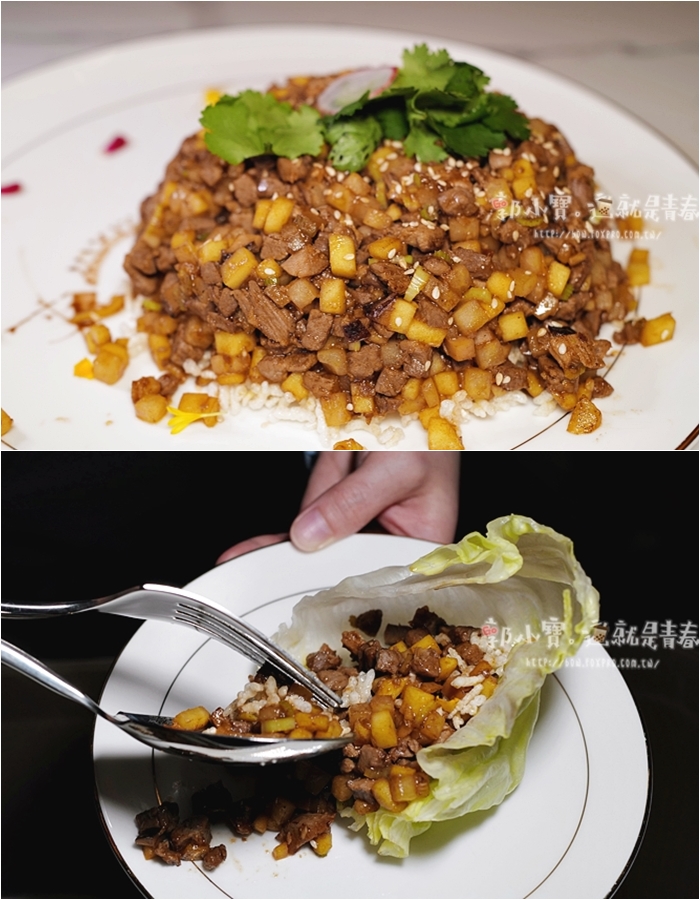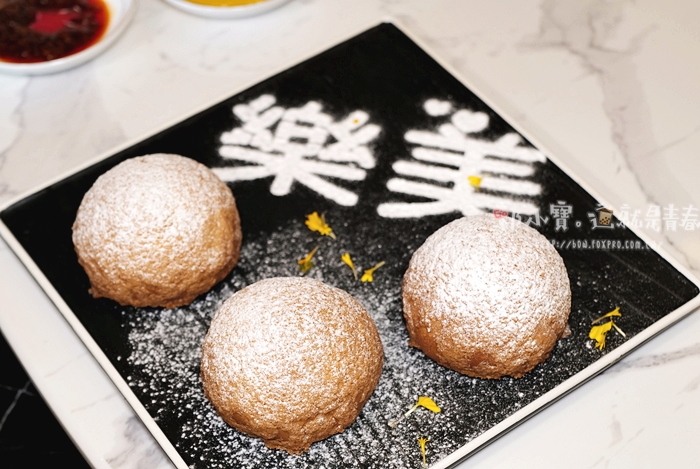 | 其實我個人不是很愛鴨鬆,這幾年吃的烤鴨大家都喜歡點鴨鬆,但是我吃起來都有點膩口,但是無奈大家三吃還是想吃鴨鬆,所以就試試看,這鴨鬆也是我摸著良心說,這幾年我覺得我能吃得下的鴨鬆,吃起來一點都沒有鬆散感跟過膩感,雖然烤鴨配鴨鬆是為了清爽點,但是一堆烤鴨店的鴨鬆我覺得一點都不清爽,但Le Mei樂美的鴨鬆加入了松子、馬蹄、醬汁比例也不會過重,算是我目前唯三間內可以接受的鴨鬆。 |