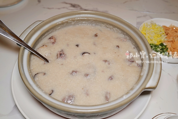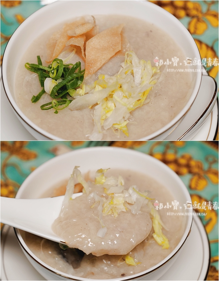 | 我個人熱愛喝鴨粥,平常烤鴨的鴨粥如果有剩下,我個人是一定打包帶走,整個鴨油的精華幾乎鴨粥最能表現出來,Le Mei樂美的鴨粥熬煮到米粒幾乎都爆開,都快變成無米粥了,典型的費工粵菜。 |