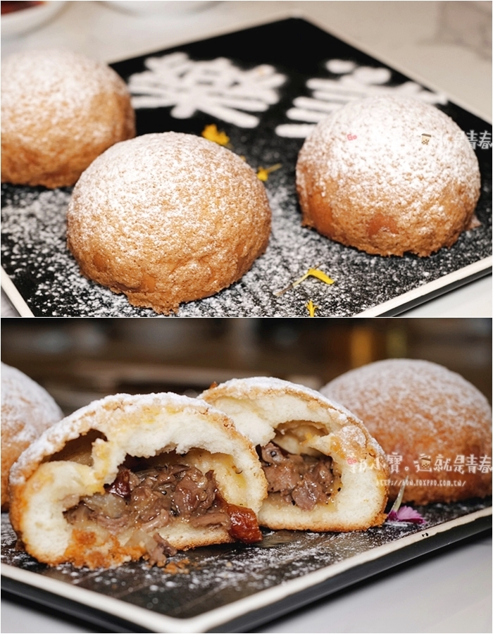 | 雪山包一上來的時候我以為大概就是像添好運的酥皮焗叉燒包,入口後才知道味道完全不一樣,外皮的糖霜搭配有點咬勁的外皮,內餡是濃郁的鴨肉,我整整的嗑了三個,對男生來說是會讓人停不下來的點心!!! |