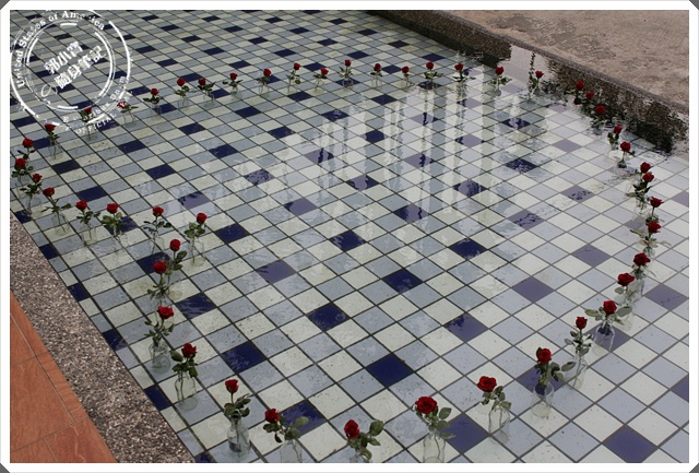 浪漫滿屋的周圍還有玫瑰護城河,淺藍色與深藍設的交叉拼磚,反應的水流閃閃耀眼。 |