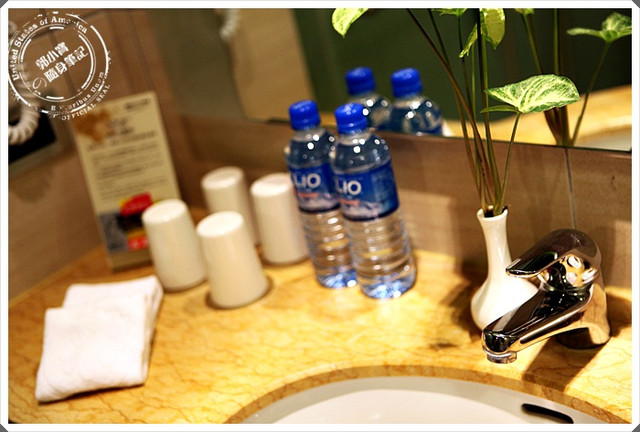 | 更貼心的還有這個,在洗手台前放上兩瓶礦泉水,夠貼心了吧!!