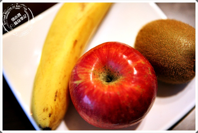分別有香蕉蘋果跟奇異果,都是營養價值很高的水果,在耐斯王子飯店裡面,我確實碰到了很多的第一次。