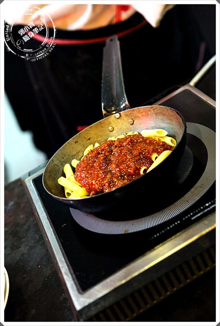 | 既然有異國料理區,又剛好這個月是義式料理,當場就跟師傅點個義大利肉醬筆管麵來吃了,