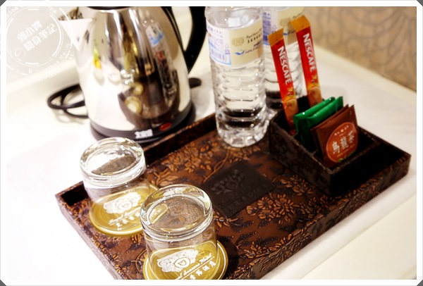 | 最旁邊的就茶水桌了,冰箱在茶水桌的下面,來看看茶水桌上面擺放了什麼。 |