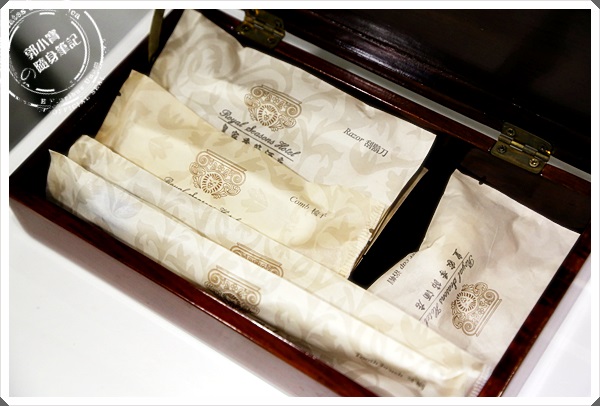 | 備品都放在洗手台上一個精美的小木盒裡面,備品非常的齊全。 |