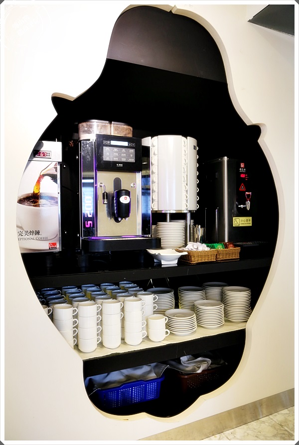 | 最引人注目的就是咖啡機在可在的造型挖洞木板理,非常特別的造型呢 |