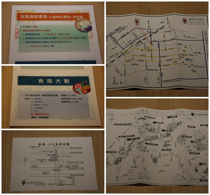 必須提早一個半小時跟櫃檯說,可以仔細看專案內容,例外還有提供放鬆按摩療程專案,一整個不用吃飯店門就可以吃喝玩樂整個嘉義了。 |