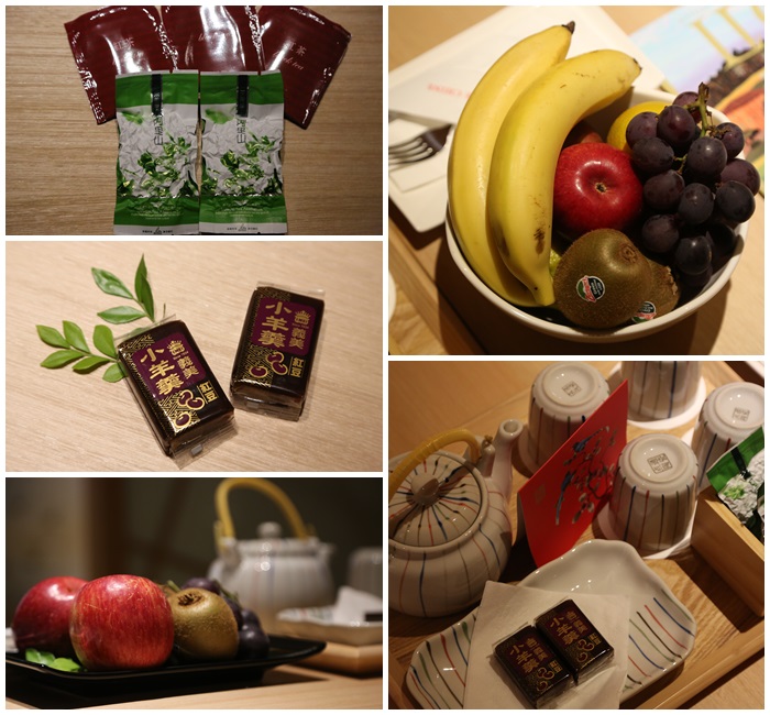 | 兆品酒店說真的超大氣的,給了兩包的高山茶葉讓客人直接沖泡,老實說我有沖泡一包真的很好喝,不式仿間那種便宜的茶葉,泡了一壺芳香滿口,真的超讚,加上水果每天都會提供也超大心的,還有小羊羹配茶也是一絕!!!! |