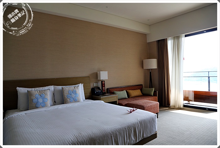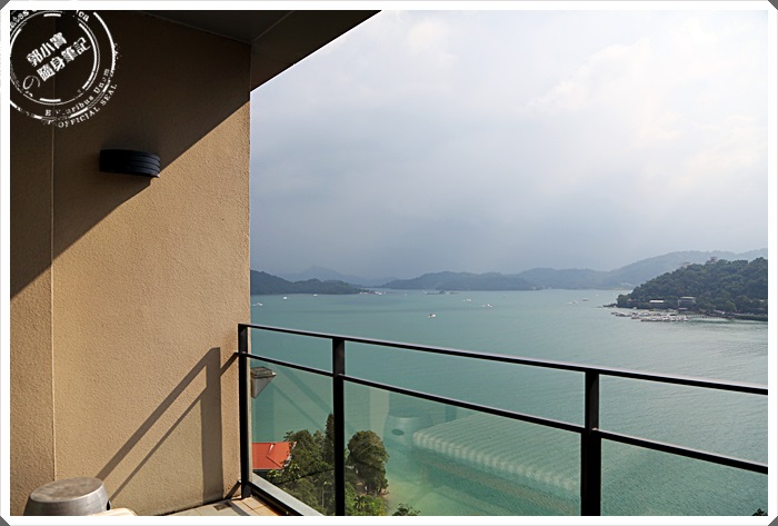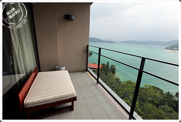 | 房間外的陽台頗大,還有一張沙發椅,可以眺望日月潭的湖光山色。 |
