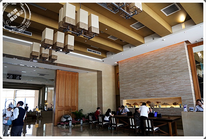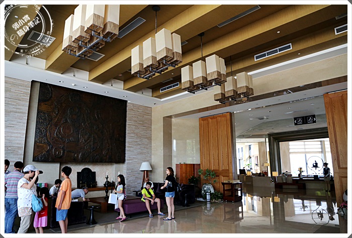 | 進入大廳後發現挑高特別的高,右手邊是櫃台,人雖然很多但卻不感覺到吵雜,也是日月潭裡面少見有大陸客的酒店,幾乎都是台灣人跟外國客居多。 |